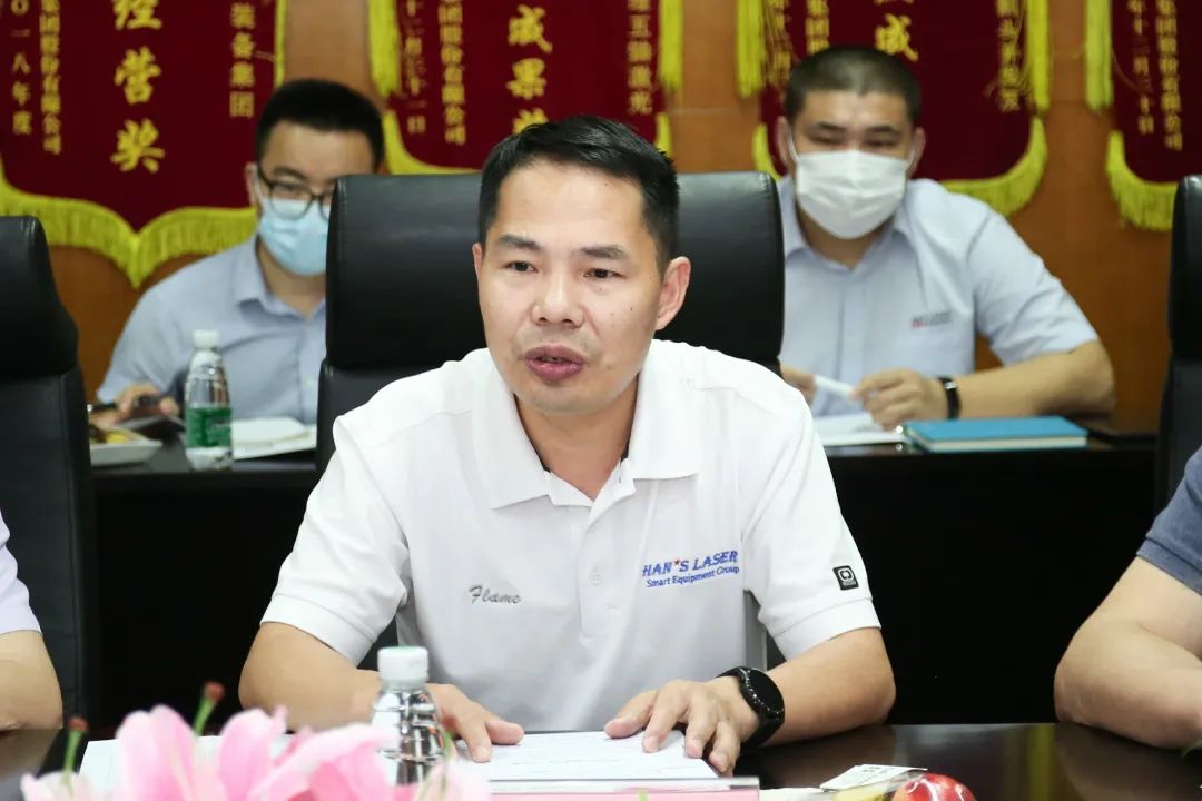 △大族激光智能裝備集團(tuán)3D激光加工產(chǎn)品中心劉旭飛副總經(jīng)理為與會(huì)人員介紹項(xiàng)目方案、實(shí)施階段計(jì)劃等相關(guān)情況。