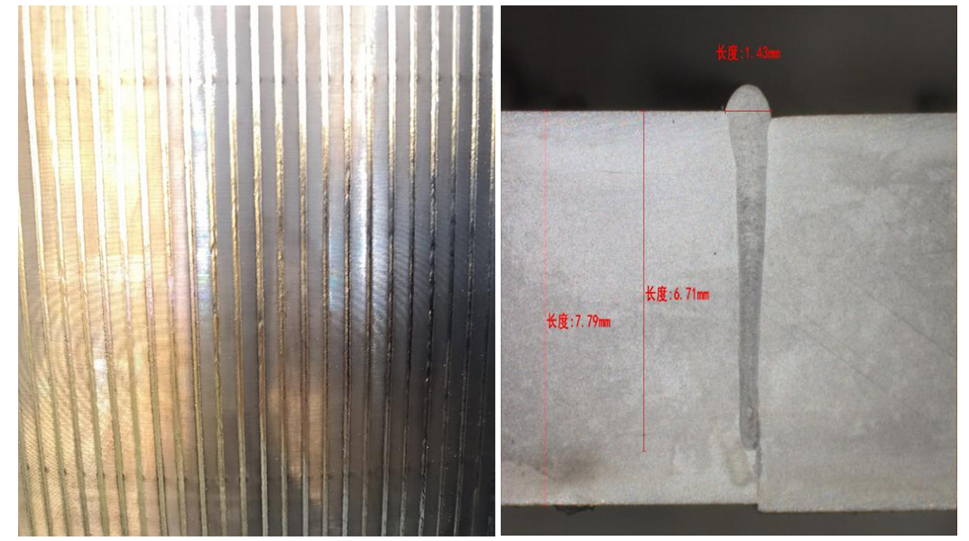 5.工藝性能好。大族激光開發(fā)的焊接工藝很好地解決了大型薄壁工件超密集焊縫焊接形變問題,工藝過程穩(wěn)定可靠;環(huán)形拼接焊縫:8mm厚GH4169&鎳焊透,起弧收弧平順,無明顯凹痕,單面焊接雙面成型,兼顧產(chǎn)品的強(qiáng)度與氣密性要求。可適應(yīng)各類不銹鋼、高溫合金、銅合金、銅-鋼異種金屬、高溫合金-不銹鋼異種金屬焊接。