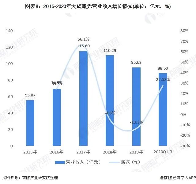 大族激光不僅銷往國內(nèi),還大力銷往海外,2015-2018年大族激光海外收入快速增長,2019年出現(xiàn)下降,達(dá)8.98億元,同比下降26%,占公司總收入的9.4%。2020年公司加快國際化步伐,對標(biāo)國際競爭對手,重新規(guī)劃產(chǎn)品及戰(zhàn)略,進(jìn)軍海外高端市場。