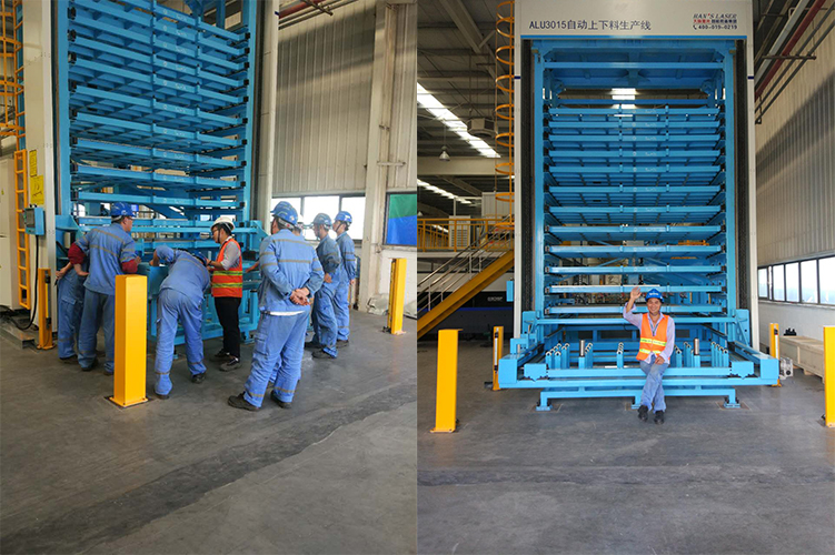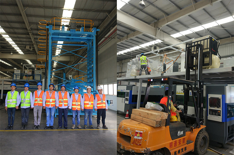 項(xiàng)目的安裝過(guò)程困難重重,由于客戶提供給研發(fā)的尺寸有誤,產(chǎn)線料庫(kù)立起以后料庫(kù)梯子被車間管道擋住無(wú)法上人,我方工程師決定要把梯子改造到別外一邊,重新配孔,切割梯子和料庫(kù)頂上護(hù)欄進(jìn)出口現(xiàn)場(chǎng)切割和焊接比較困難,又加上是高空作業(yè),導(dǎo)致整個(gè)安裝過(guò)程真是難上加難。我方項(xiàng)目負(fù)責(zé)工程師劉春華、何亮、李付清、趙爽、胡科、王曉烽、胡智明、宴嘉、張道慶在重重的困難面前,嚴(yán)格根據(jù)要求一絲不茍的完成安裝工作,用自己的專業(yè)技術(shù)解決了標(biāo)準(zhǔn)機(jī)防塵罩變徑接頭尺寸不對(duì)、產(chǎn)線護(hù)欄現(xiàn)場(chǎng)組裝等問(wèn)題。