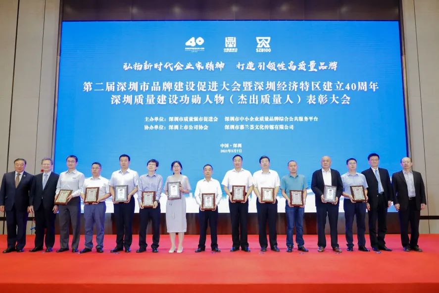 本次大會由深圳市質(zhì)量強市促進(jìn)會主辦,深圳上市公司協(xié)會等單位協(xié)辦,以“弘揚新時代企業(yè)家精神 ,打造引領(lǐng)性高質(zhì)量品牌”為主題,助力打造更具時代引領(lǐng)性的深圳品牌,率先壘實高質(zhì)量發(fā)展高地。深圳市政協(xié)副主席徐友軍出席大會并致辭,深圳市質(zhì)量強市促進(jìn)會會長馬蔚華致歡迎辭,老領(lǐng)導(dǎo)、深圳市政府原副市長陳彪和深圳市市場監(jiān)督管理局原巡視員郭曉渝等應(yīng)邀出席大會。