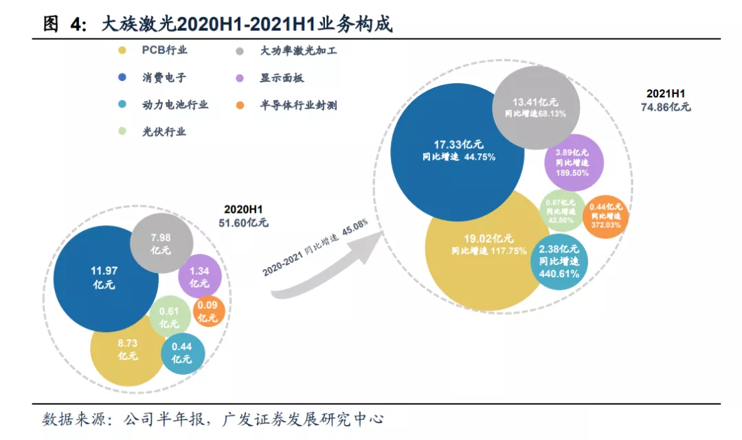 2021年以來公司業(yè)績受益于下游高景氣,在動(dòng)力電池、PCB、顯示面板和半導(dǎo)體等多個(gè)下 游行業(yè)獲得大幅增長。公司業(yè)務(wù)結(jié)構(gòu)持續(xù)改善,對(duì)消費(fèi)電子大客戶依賴變小,周期性影響有望減弱。
