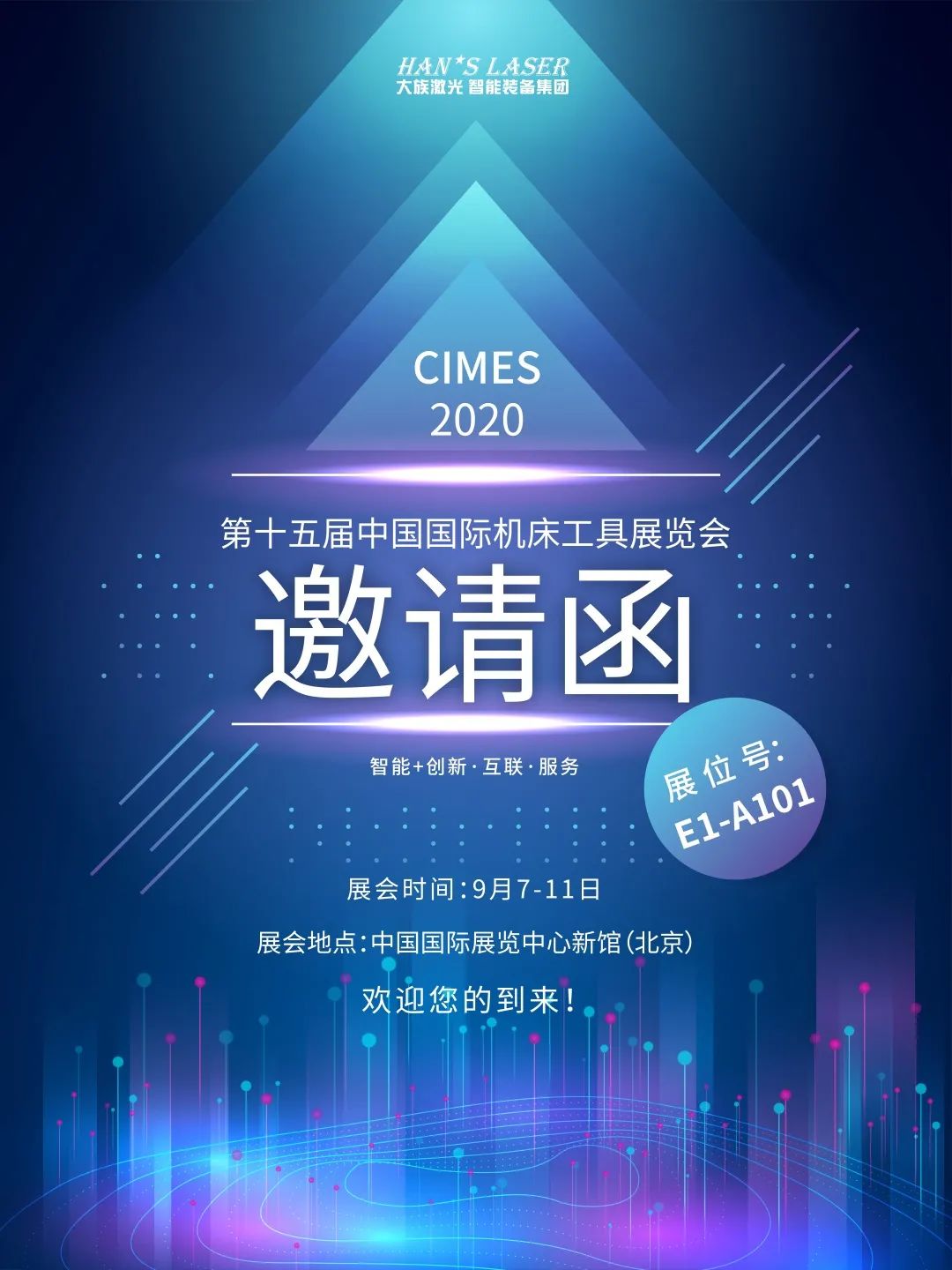 第十五屆中國國際機(jī)床工具展覽會,將于2020年9月7-11日在中國國際展覽中心新館(北京)舉行,大族激光智能裝備集團(tuán)攜激光智能制造系統(tǒng)解決方案亮相,展位號E1-A101,期待您的蒞臨參觀!