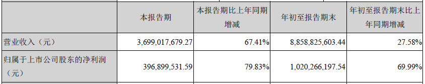 400-666-400010月25日晚,大族激光科技產(chǎn)業(yè)集團(tuán)股份有限公司(以下簡(jiǎn)稱(chēng)“大族激光”或“公司”)發(fā)布了2020年第三季度報(bào)告。報(bào)告顯示,大族激光第三季度營(yíng)收36.99億元,同比增長(zhǎng)67.41% ;歸屬于上市公司股東的凈利潤(rùn)3.97億元,同比增長(zhǎng)79.83%。