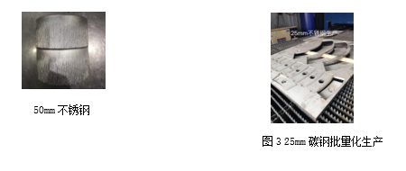 近幾年,激光切割的市場需求不斷加大,人們對于其加工能力的期待也越來越高,這種期待不僅僅是對能夠切,還必須保證切得好和切得快。針對25mm以上厚度的碳鋼板,為了獲得良好的切割效果,大族激光智能裝備集團以厚板穿孔、切割面質量及整板加工等關鍵技術難點作為主攻方向,隨著萬瓦級功率切割技術不斷成熟且越多的被用于實際金屬板材加工中,積累了豐富的應用經驗,并逐漸掌握了厚板高品質切割工藝。當前25mm以上厚度碳鋼已實現(xiàn)批量穩(wěn)定生產,25mm碳鋼切割速度達1.2m/min。