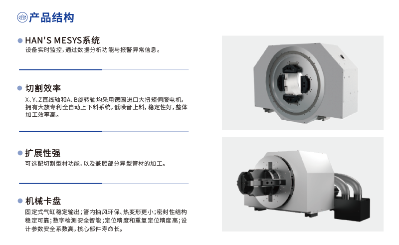 P系列高速切管機是大族激光智能裝備集團(tuán)研制開發(fā)的高端專業(yè)激光切管機,該機床采用臥式結(jié)構(gòu),配備高精密齒輪齒條、高精度直線導(dǎo)軌等高效傳動機構(gòu),傳動平穩(wěn),配備全自動上、下料裝置,大大提高生產(chǎn)效率。